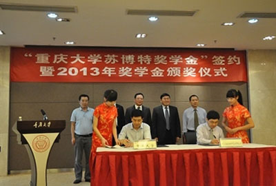 多年來,博特公司一直與重慶大學在科研、教學與人才培養方面保持密切的合作,特別是2008年5月和2010年10月分別在重慶大學設立了“蘇博特獎學金”和“蘇博特勵志獎學金”,用于獎勵和資助該校材料學院品學兼優的學生。此次公司再次捐資100萬元用于獎勵材料學院和土木學院的學生,將進一步激發學生的學習熱情,促進雙方的合作與發展。