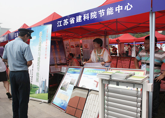 我院節(jié)能中心、檢測中心應(yīng)邀參加了在南京農(nóng)業(yè)大學(xué)舉辦的主會場活動和靜海寺廣場舉辦的分會場活動。根據(jù)省科協(xié)要求,立足科學(xué)性和趣味性,我院在活動現(xiàn)場展示了發(fā)泡陶瓷保溫板、外遮陽百葉簾等節(jié)能環(huán)保建筑材料,通過樣品展示、實際操作、性能介紹等方式,形象生動地向參會者展示了新型綠色建材的特點和優(yōu)勢。此外,我們還在現(xiàn)場設(shè)置了節(jié)能服務(wù)和建筑材料檢測咨詢展臺,為前來參加科普活動的普通市民答疑解惑。