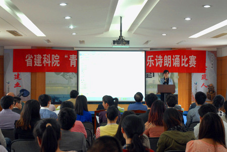 下午2:30,比賽正式開始,第一輪第一個上場的是東方公司的王聃,她朗誦的詩歌是席慕容的《青春》,這是一首對青春的短暫無限慨嘆,對青春的美好無比懷戀的經典詩作,雖然有些許緊張,但王聃低沉含蓄的聲音很快將大家帶入那種甜蜜而憂傷的詩境中去,她的表現贏得全場熱烈的掌聲,同時也獲得評委的認可,拿到55.9分的好成績(第一輪總分60分)。第二個上場的是監理公司的徐昊,一個帥氣而不失可愛的小伙子,面對壓力他絲毫不受影響,將一首《天那邊》誦讀得如癡如醉,如夢如幻,配合他精心制作的視頻文件,讓人仿佛置身于那一片深邃純凈的星空,原來青春可以是甜蜜的憂傷,也可以是寧靜的思索,最終徐昊獲得56.1分。
