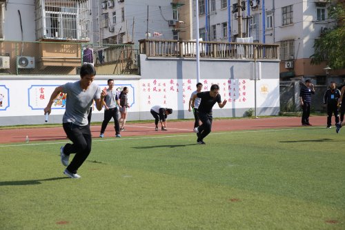 簡短的開幕式結束后,本屆運動會的各項比賽迅即展開,200多名運動員在各自的參賽項目中開始了激烈的角逐。本屆運動會針對我院員工喜愛的特點,設置了50米迎面接力賽、跳長繩、投籃、呼啦圈、足球定點射門、踢毽子、雙龍戲珠等七個比賽項目,它們中既有競技性很強的項目,著力展示我院青年員工的“速度與激情”,而更多的則是趣味性濃郁的群體運動,重在全員參與互動、意在享受體育快樂。在大會組委會的精心策劃和組織下,各項比賽安排緊湊,調度流暢,銜接得有條不紊。但聞賽場上不時響起比賽的吶喊聲、加油喝彩聲和勝利的歡呼聲,偌大的運動場成為團結拼搏的舞臺、激戰(zhàn)猶酣的戰(zhàn)場、歡樂愉悅的海洋。