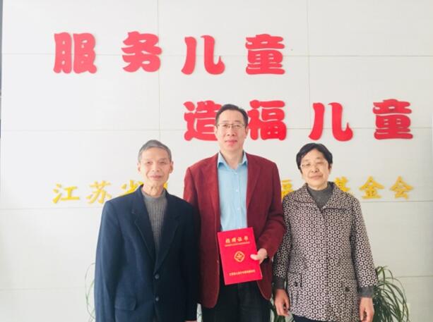 3月27日下午,在我院黨委費宏亮副書記的陪同下,王宇明先生的親屬陳援東夫婦,來到江蘇省兒童少年福利基金會,向基金會捐贈了七萬五千元人民幣的愛心,用于關愛我省貧困地區的部分少年兒童的健康成長。