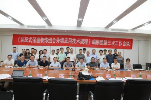 會上,主編單位袁楊主任介紹了本次標準目前的總體進展情況,孫正華博士主持了《裝配式保溫裝飾組合外墻應用技術規程》所有章節條款的討論、修改工作。編制組成員對本標準的修改稿進行了仔細的檢查和激烈的探討,提出了進一步完善的意見和建議,會議最后對規程的下一步工作進行了具體安排,明確盡快完成第三次討論稿修改并形成征求意見稿。本次規程討論會的召開對于推進《裝配式保溫裝飾組合外墻應用技術規程》的編制進度具有重要意義。
