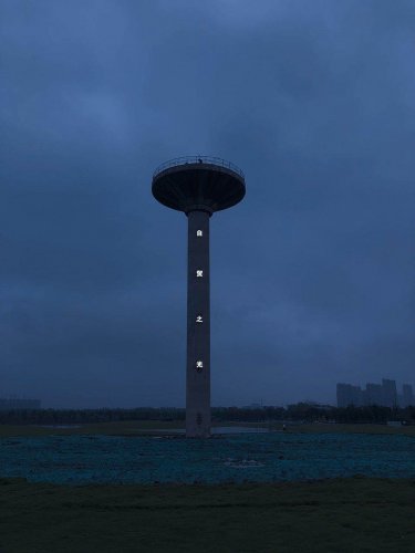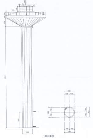 因江北新區(qū)自貿(mào)區(qū)成立5周年慶典需要,新區(qū)管委會擬對位于黃浦路3號的原頂山養(yǎng)殖場水塔進(jìn)行亮化與改造。水塔為鋼筋混凝士倒錐殼結(jié)構(gòu),上部為斗狀水箱,下部為圓柱形支筒的高聳建筑物,高度35米。由于工期緊張,無法按常規(guī)模式對水塔分階段進(jìn)行檢測鑒定、設(shè)計(jì)施工以及環(huán)境亮化。