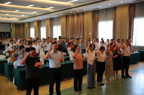 大會舉行了集體宣誓儀式。所有黨員全體起立,七位新入黨的同志在費書記的帶領下,在主席臺前整齊站立,高擎右臂,面對鮮紅的黨旗,莊嚴宣誓。宣誓聲鏗鏘有力,擲地有聲,表達了全體黨員對黨忠誠和為共產(chǎn)主義奮斗終身的決心!